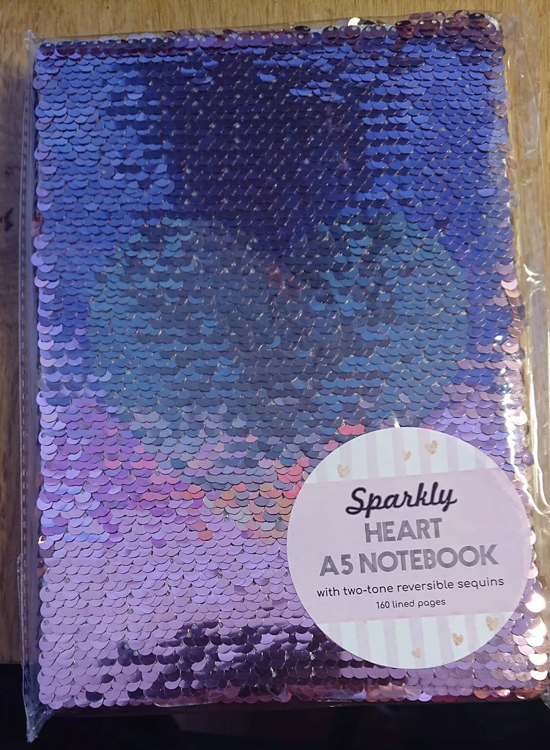 160 lined pages in this cute sequined covered note book.