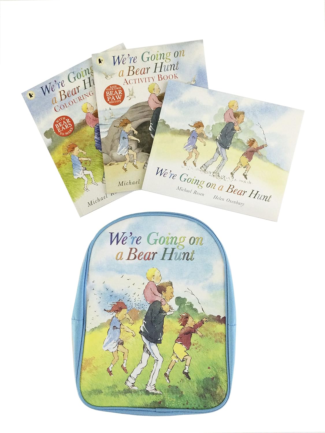 This bright blue backpack contains three brilliant books for bear hunters everywhere: the classic family-favourite picture book We're Going on a Bear Hunt by Michael Rosen and Helen Oxenbury, a fabulous fun colouring book and an activity book containing mazes, puzzles, baking and craft activities. Ideal for rainy day fun and outdoor adventures, this is the perfect present for any bear-lovers and brave hunters!
